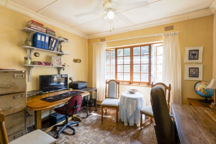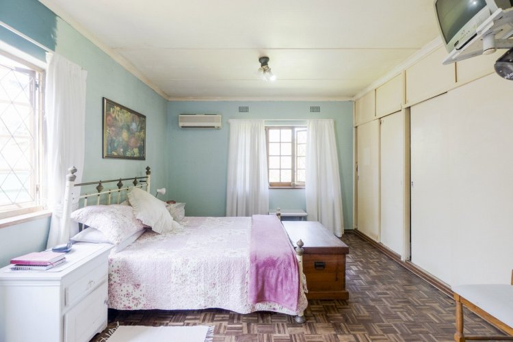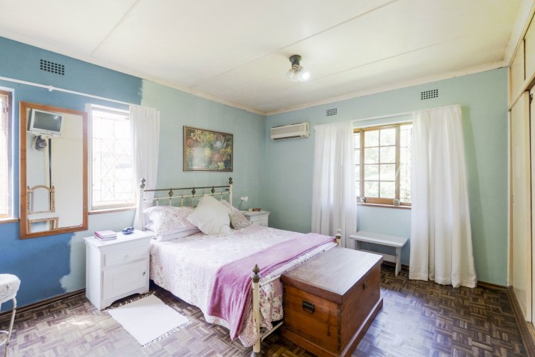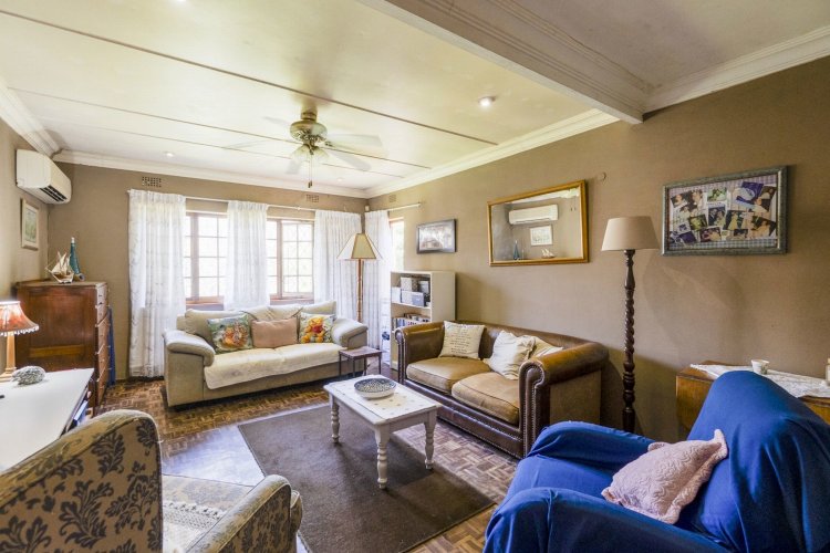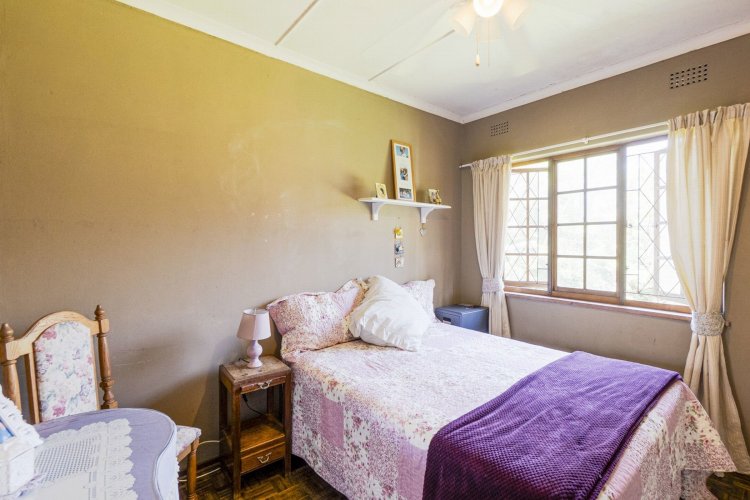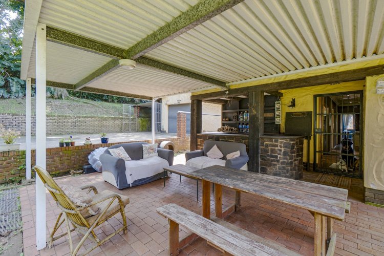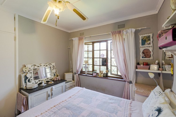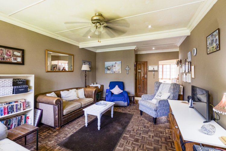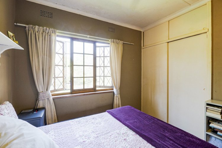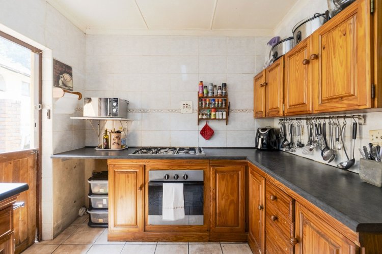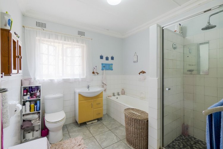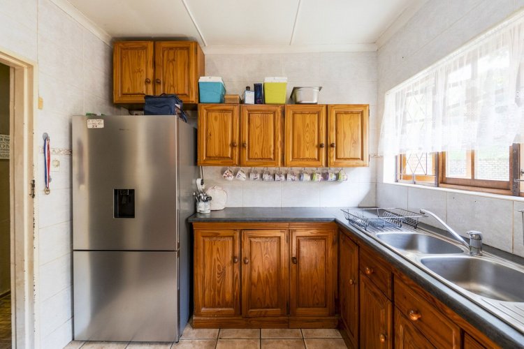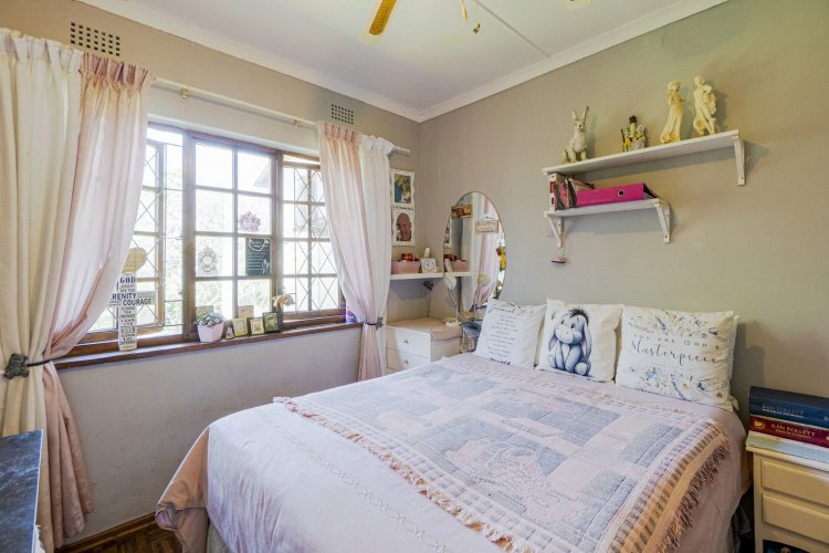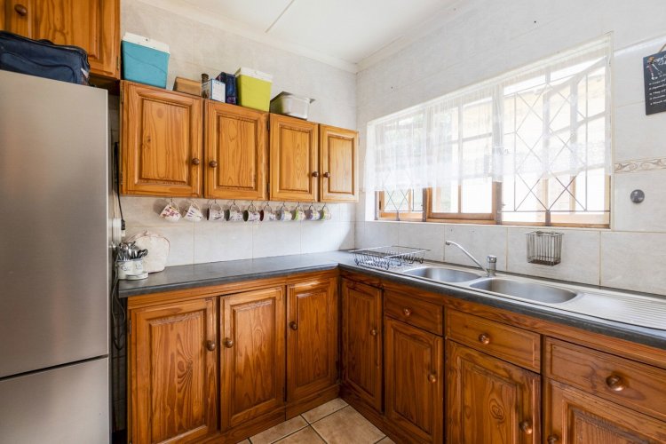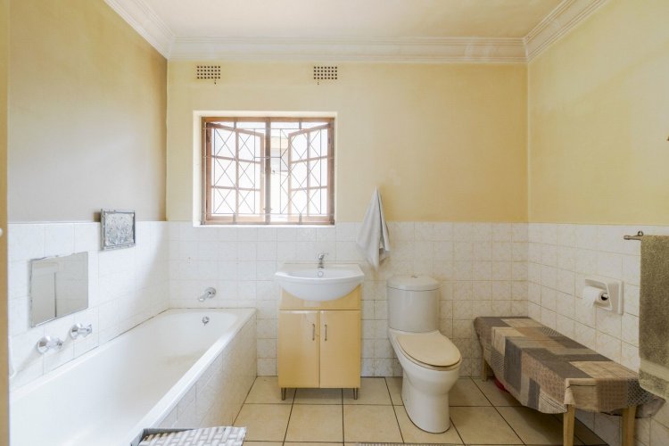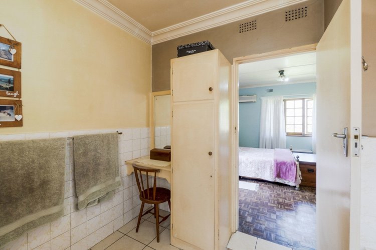 Each bedroom features built-in cupboards, while the main en-suite offers a touch of luxury with a sunken bath, shower, toilet, and vanity unit — all tiled to the ceiling. Enjoy a bright tiled lounge, a well-appointed kitchen, and a bar area perfect for entertaining.