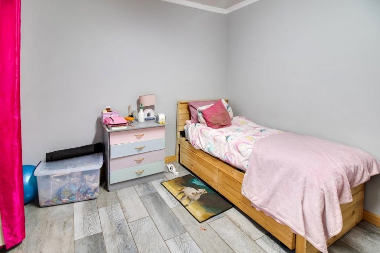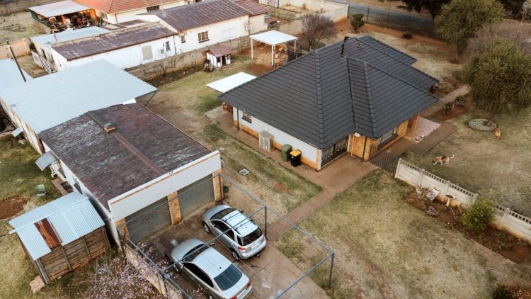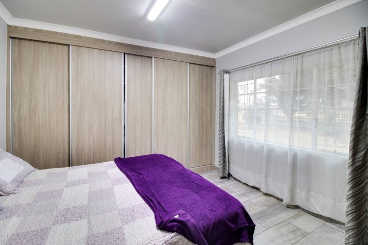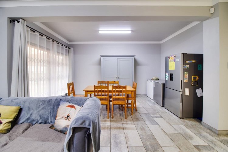 This property offers spacious open plan lounge and dining room and kitchen with gas stove. Three bedrooms, 1.5 bathrooms. Two garages and carports to fit 4 cars. There is also a borehole. Situated close to the R 59.