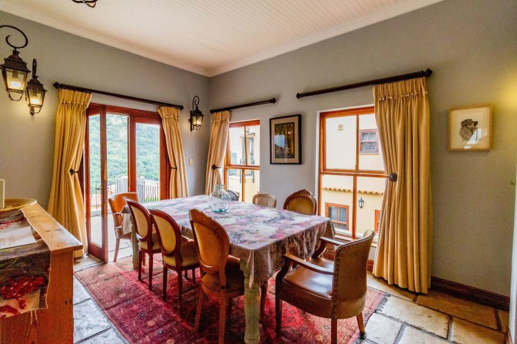 Fall in love with this stunning double-storey home, offering charm and breathtaking mountain and water views. This stylish French country home comprises three lavish bedrooms with en-suite bathrooms, ensuring privacy and convenience. Additionally, a well-appointed guest cloakroom adds to the convenience for daily guests. A wine cellar could easily double up as a study for that person who requires a secluded and quiet workspace.