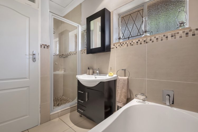 The home features three sunny bedrooms, all with built-in cupboards, as well as a family bathroom with bath, shower, basin and vanity and a convenient separate toilet. Storage is never an issue, with three additional linen cupboards conveniently located in the passage.