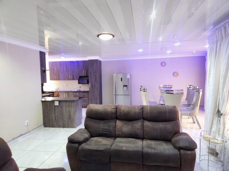 Spacious 3-bedroom home in a secure complex in Geelhoutpark, perfect for families and entertainers alike. This charming property measures 157sqm and features an open-plan lounge, dining, and kitchen, ideal for modern living.