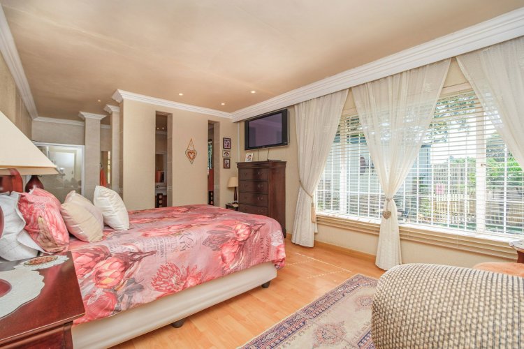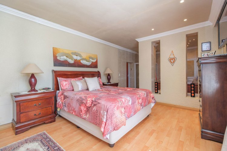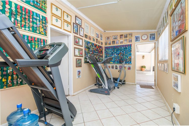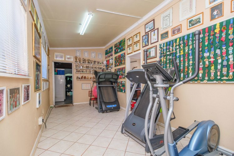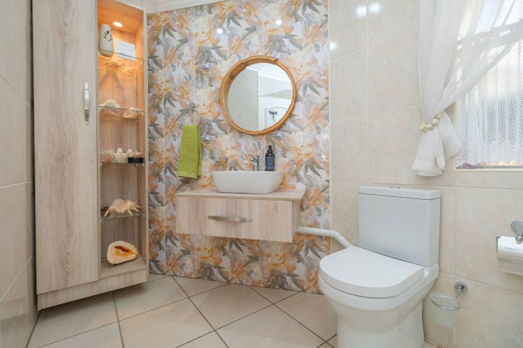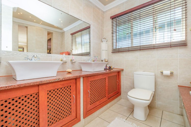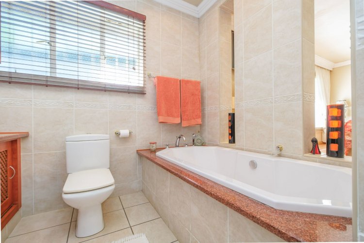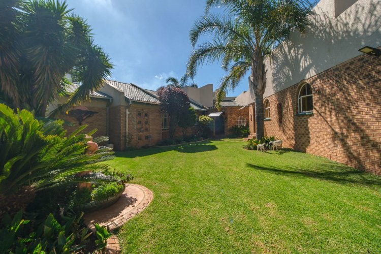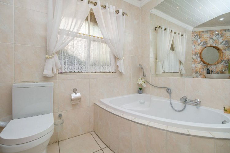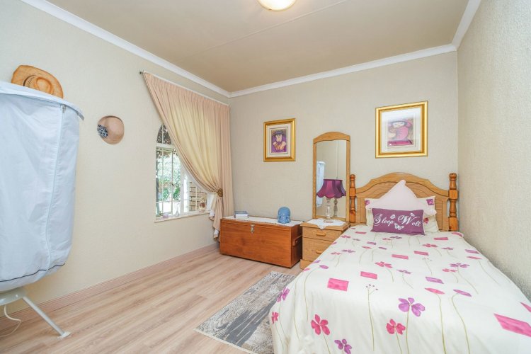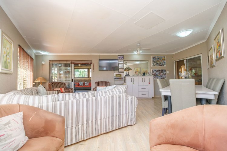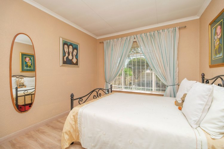 A major highlight is the thatch lapa, complete with a built-in braai, perfectly positioned to overlook a sparkling swimming pool. It's a dream setup for outdoor entertaining, summer braais, or simply unwinding after a long day.