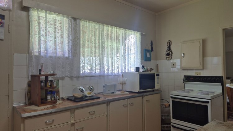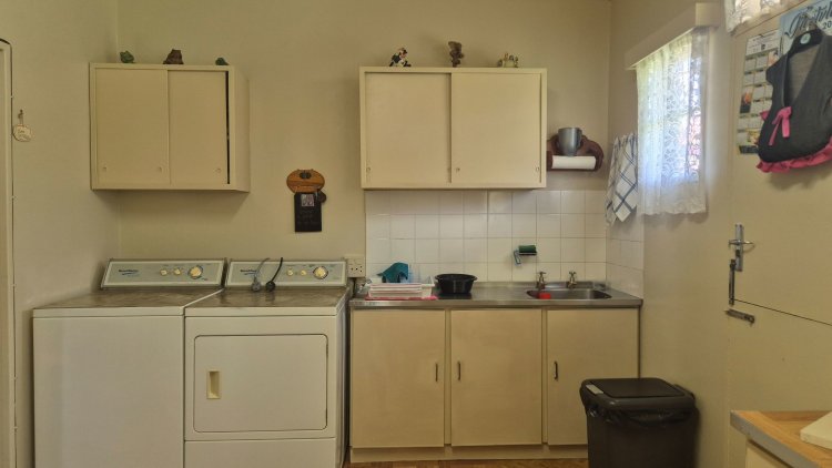 The fully fenced, pet-friendly yard also includes useful extras such as a domestic room, an outside toilet, and additional storage space.