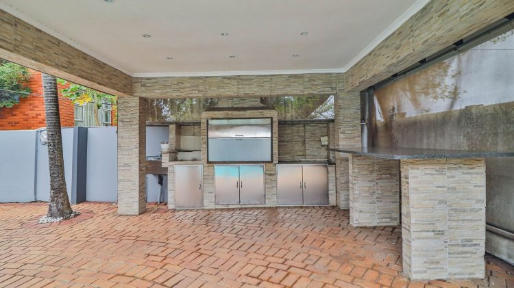 Outdoor Paradise: • A beautifully landscaped garden with striking curb appeal. • Sparkling pool with a rock fountain feature – your private oasis for tranquil relaxation. • Outdoor cooking and braai area – ideal for hosting gatherings in a serene, resort-style setting.