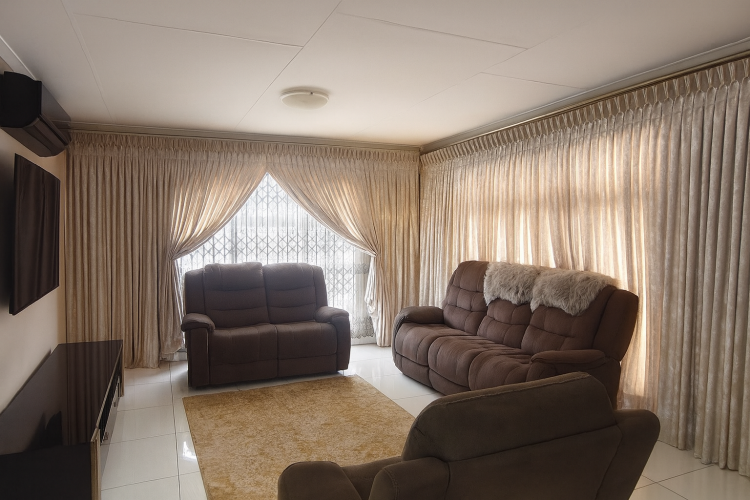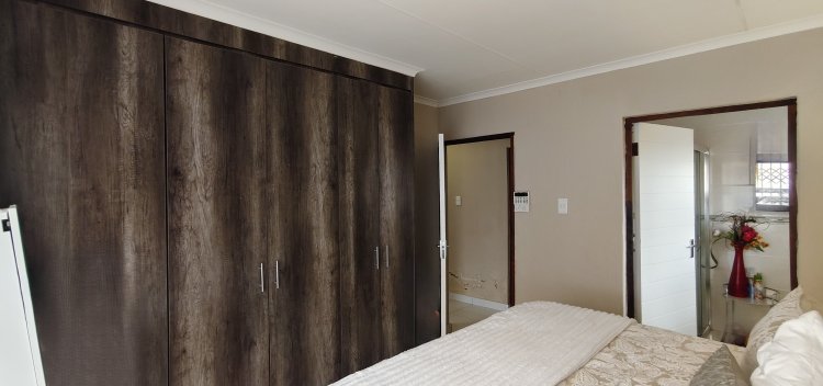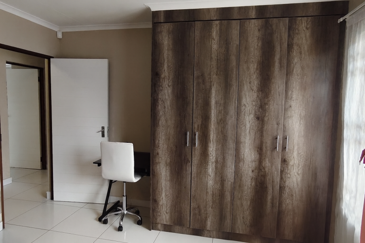 Down the hallway, you will find a neat guest bathroom fitted with a bathtub, toilet, and basin. All three bedrooms are spacious and equipped with well-designed built-in cupboards, ensuring practical and organized storage. The main bedroom boasts its own en-suite bathroom complete with a shower, basin, and toilet.