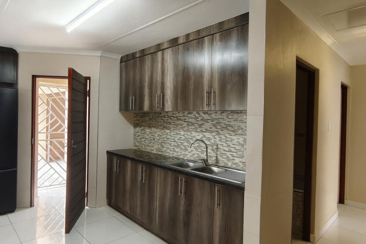Welcome to this charming three-bedroom home featuring an inviting open-plan layout that seamlessly connects the modern kitchen to the dining and living areas. The stylish kitchen offers ample countertop and cupboard space, a double basin, and a designated area for a washing machine—perfect for convenient everyday living.
