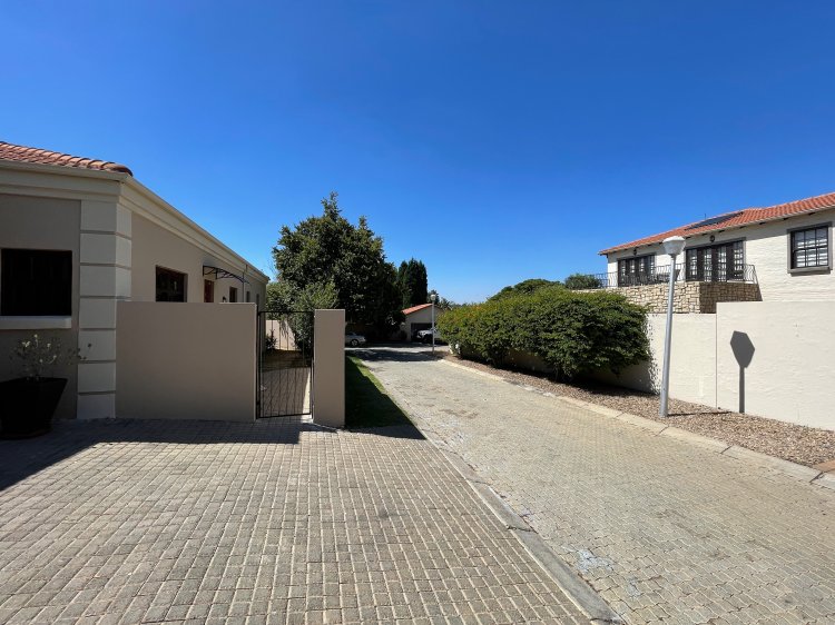 Set in a quiet cul-de-sac in this complex with first class security, this spacious home comprises three big bedrooms. The main bedroom is en suite with a dressing room area and opens out to a lovely garden and overlooks the pool. The entrance hall is split level with the rest of the house. The dining room which is large enough to hold a 10 seater dining room table, opens out to the uncovered patio and garden and is open to a well planned kitchen with space for a double door fridge and separate scullery. The spacious lounge also opens out to the patio and garden. A double garage, blue sparkling pool, staff accommodation as well as the obligatory lemon tree complete this beautiful, Immaculate home very well priced at R3 100 000.00. This home is definitely worth a visit.