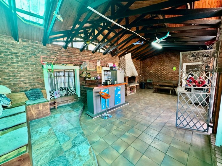 Main house offers: -3 large bedrooms with built-in cupboards. -2 neat bathrooms (main en-suite). -Practical kitchen made for family life. -Spacious dining room. -Large TV room / lounge – ideal for entertaining. -Big indoor braai area – built for weekends. -Swimming pool and shaded garden with mature trees. -Double garage + 4 covered parking bays. -Outside storage room.