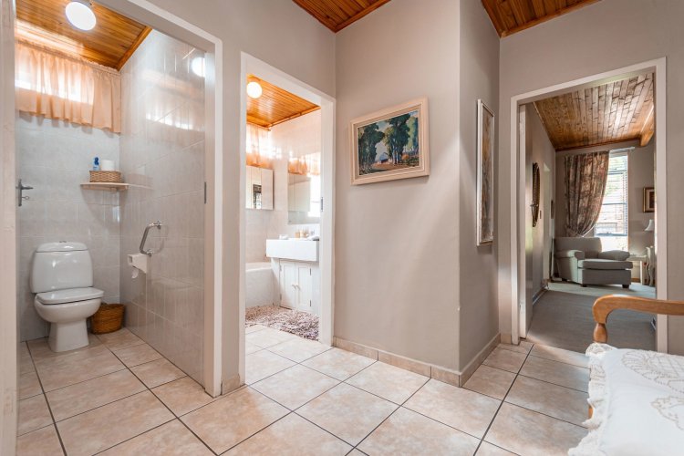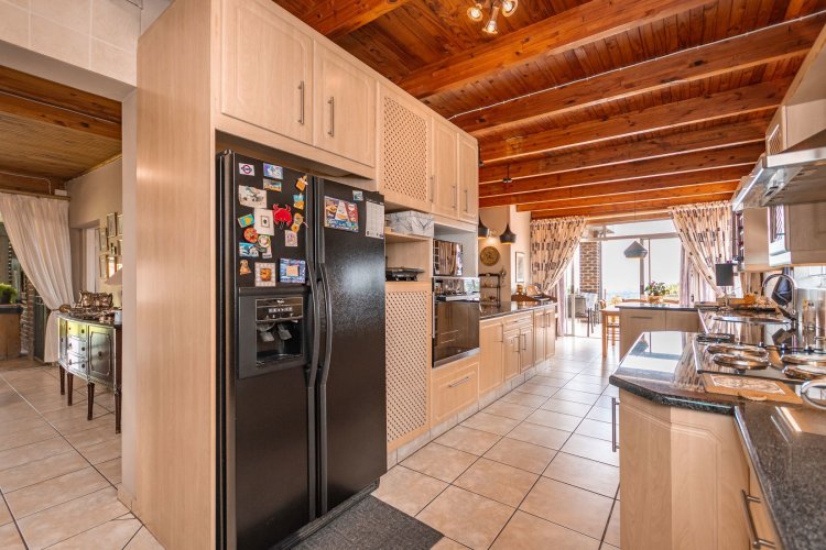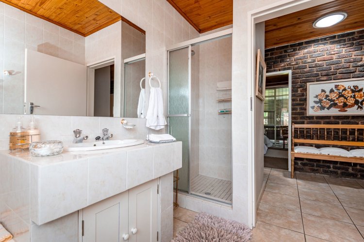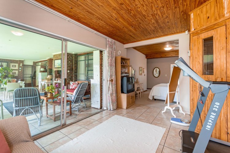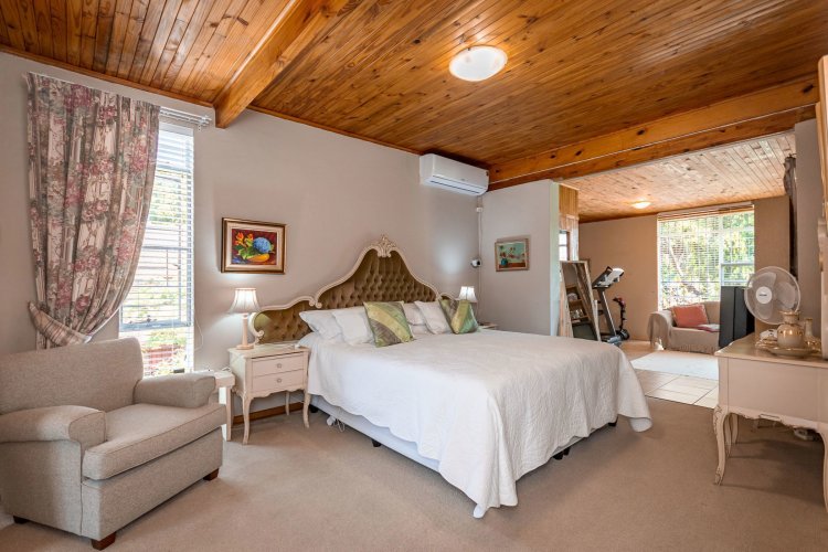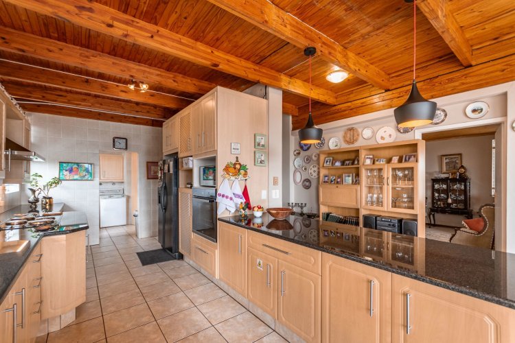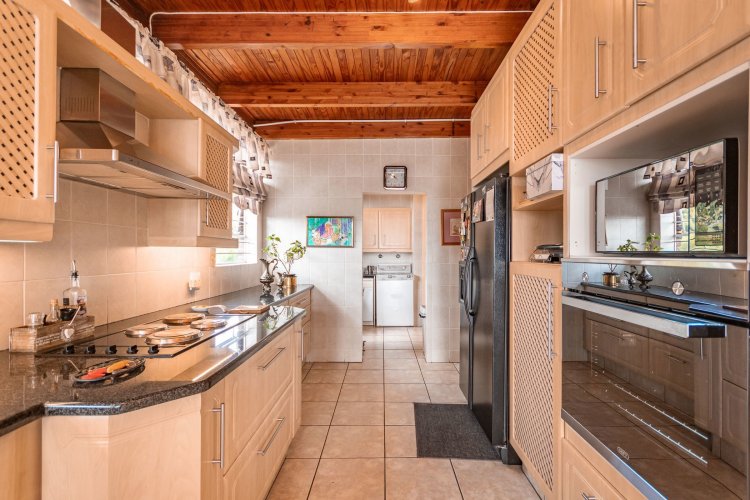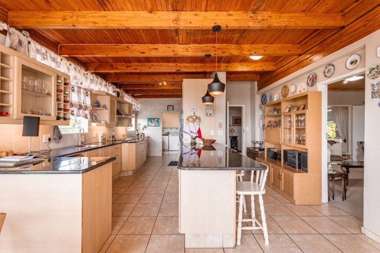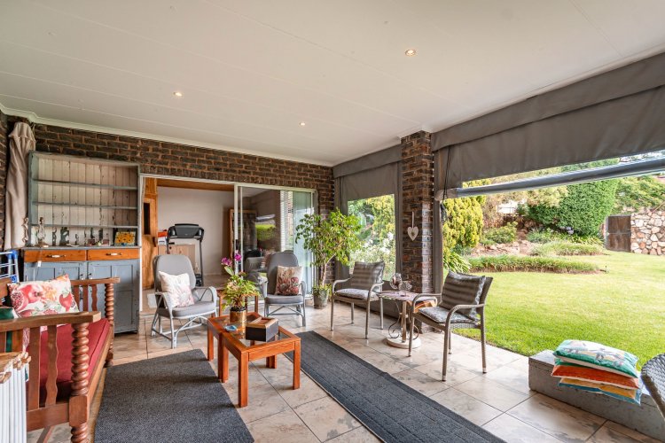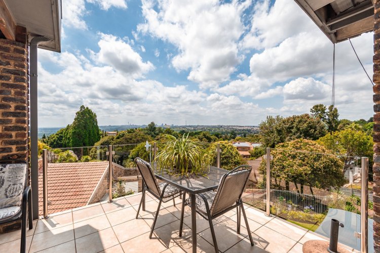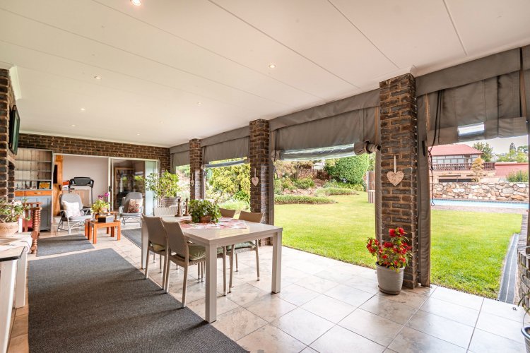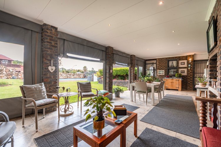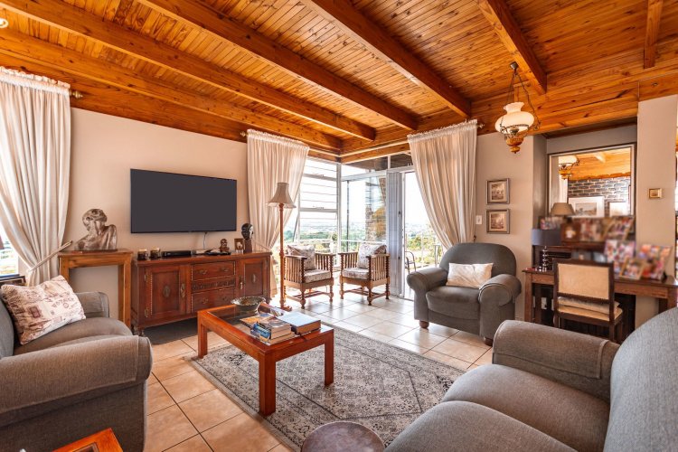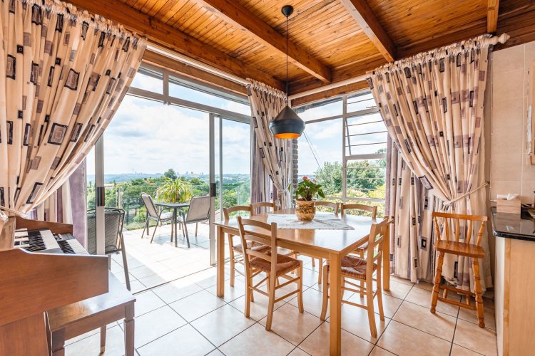 Perched in a quiet cul-de-sac, this distinctive home boasts breathtaking views and offers exceptional versatility, with generous family accommodation plus two income-generating cottages—ideal for subsidising your bond through rental income. Designed for effortless entertaining, the home features a huge covered patio overlooking a beautifully landscaped garden and sparkling swimming pool, perfect for relaxed outdoor living. A spacious room off the main bedroom accommodates a sauna and gym area. The main residence offers three spacious bedrooms and two well-appointed bathrooms. A gourmet kitchen impresses with ample cabinetry, expansive granite countertops, and a separate scullery accommodating all appliances. The open-plan dining area is surrounded by glass openings and balconies, allowing natural light to flood in while showcasing the stunning views. Living spaces include a cosy formal lounge and a comfortable family TV room, catering to every member of the household. A fitted study and separate hobby room provide flexible options for work-from-home, creative pursuits, or additional accommodation. A guest cloakroom near the entrance offers convenient access from the living areas. Adding exceptional value are the two fully self-contained cottages, each with private entrances, complete privacy, and ample parking—ideal for extended family, grandparents, young adults, or rental opportunities. The possibilities are endless. Extras include good security with alarm system, fully walled garden, double automated garage, and irrigation system. A rare opportunity offering space, income potential, and lifestyle versatility in a sought-after setting.