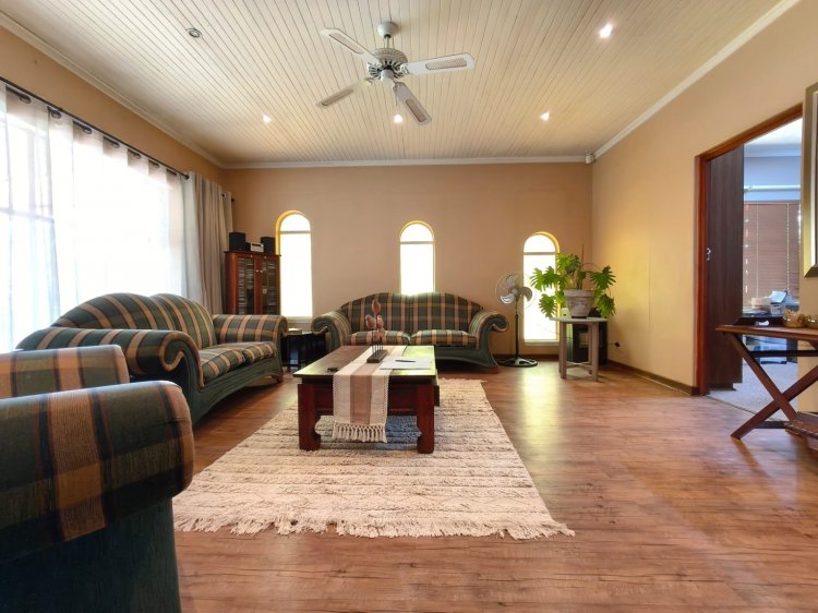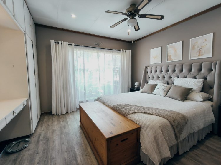 Additional features include a double garage, Wendy house, servant's quarters, storeroom, extra undercover parking that is also suitable for a caravan and a low-maintenance design, allowing you to enjoy your home without the hassle of constant upkeep. This home is further equipped with a borehole, irrigation system, alarm system, beams and a heated for the geyser.