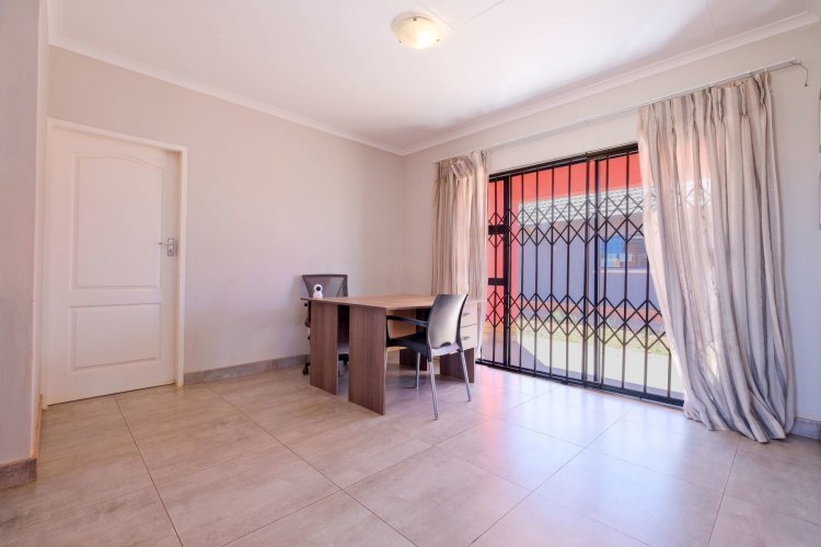 North-facing main bedroom featuring a burglar-secured aluminium sliding door—perfect for welcoming fresh morning air or enjoying a peaceful sundowner.