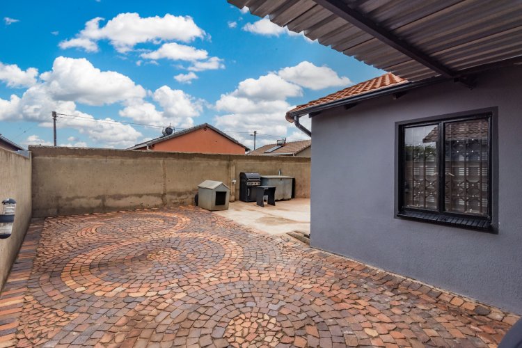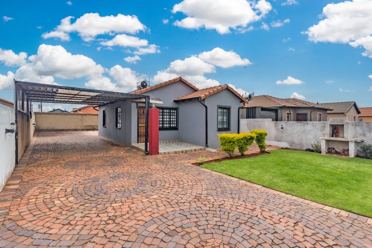 This neat and well-maintained home offers: - 3 Bedrooms, all fitted with built-in wardrobes. - Combined bathroom and toilet, fully tiled from floor to ceiling. Open-plan lounge. Fully fitted kitchen with tiled flooring. Carport for 2 cars