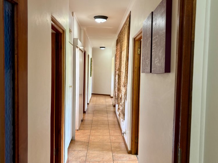 This large, well-laid-out family home offers excellent potential in the heart of Riebeek Kasteel. The open-plan living and dining areas flow into the kitchen and out to a generous braai area—ideal for relaxed family living and entertaining. There are three comfortable bedrooms and a study that can easily be used as a fourth bedroom. A standout feature is the flexible lower-level utility space, accessible from both inside and outside the home, which connects directly to the oversized double garage with built-in storage. While the finishes are slightly dated—tiled floors and carpeting throughout—the home is well built and spacious, offering a great opportunity to modernize and make it your own.