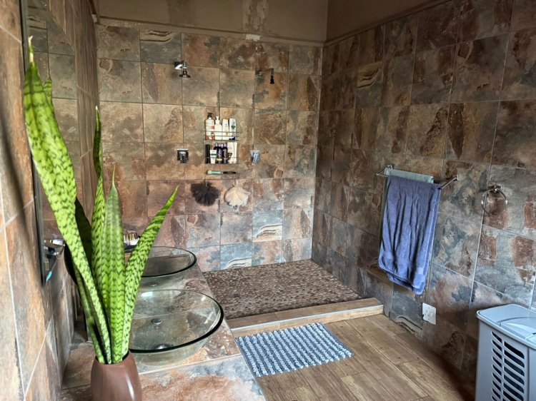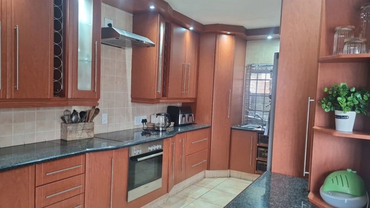 At the heart of the home is a spacious, well-appointed kitchen with an electrical stove, opening seamlessly into inviting entertainment areas. The flatlet is thoughtfully equipped with a gas stove, adding efficiency and convenience, while both the main house and flatlet each enjoy their own gas geyser—ensuring reliable, energy-efficient hot water throughout.