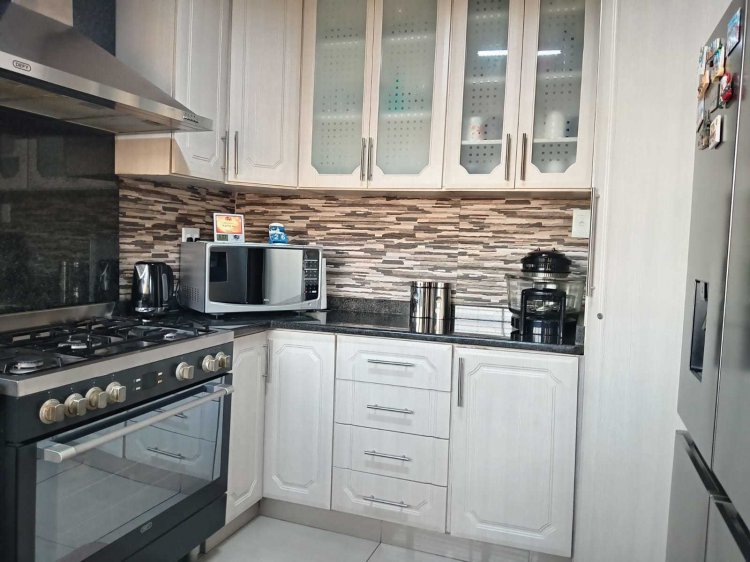 A perfectly balanced home featuring 3 comfortable bedrooms with built in cupboards, elegant lounge, spacious dining area, gourmet kitchen awaits passionate cook, modern family bathroom plus guest toilet. Unwind and relax on the balcony capturing scenic views. Bonus is the basement comprising of 2 large rooms, kitchen with built in cupboards and bathroom, can be converted as a guest house or let out for additional income. Massive fully paved yard accommodating parking for 10 vehicles, ideal for family gathering, entertainment, kids and pets to run freely. Property is fenced has electronic driveway gates for added security and convenience.