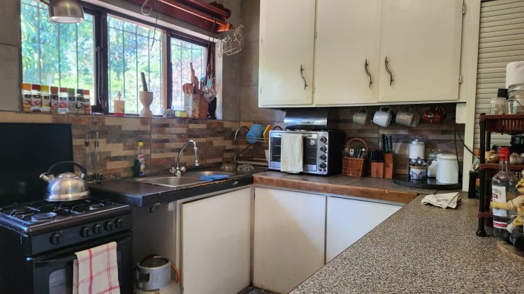 The home also features newly installed IBR roof sheeting for added durability, gas geysers in both the main house and the cottage, and a tandem garage with space for a workshop. There are four water tanks—two for rainwater harvesting and two connected to the municipal supply—providing excellent water flexibility.