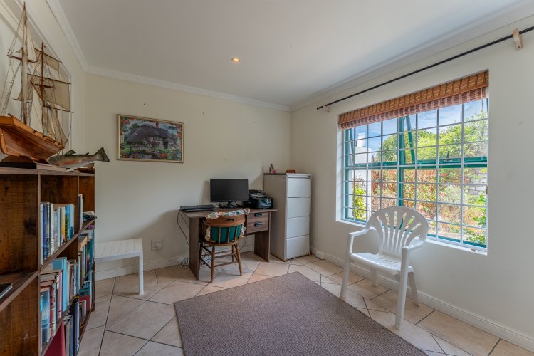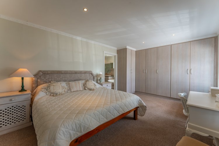 Offering three well-sized bedrooms, the home is both practical and comfortable. The main bedroom is a standout feature — expansive, beautifully finished and complete with a modern en-suite bathroom that truly delivers a “wow” factor. The two additional bedrooms are sunny and inviting, serviced by a full bathroom with both bath and shower. A separate loo offers additional convenience for guests. Natural light streams into all the bedrooms, enhancing the warm and welcoming atmosphere.