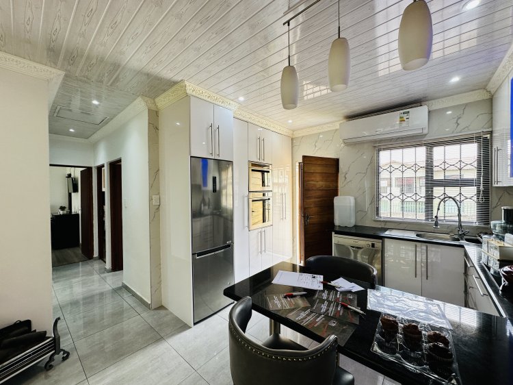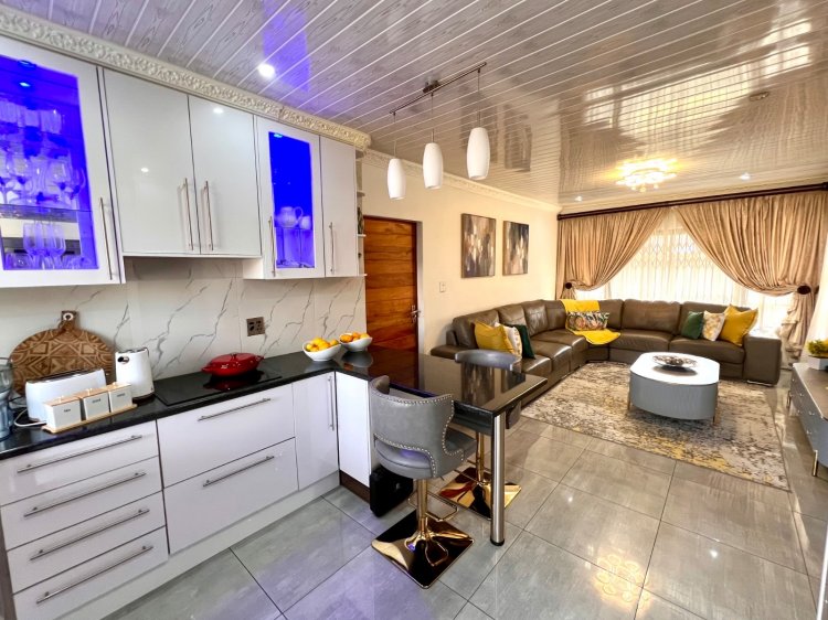 The property features 3 well proportioned bedrooms and 2 bathrooms, with the main bedroom enjoying the privacy of an en-suite bathroom. The open-plan layout creates an effortless flow between the lounge, dining area, and kitchen, making it perfect for everyday living and entertaining. The sleek, modern kitchen is fitted with granite countertops and a breakfast nook, while the home is neatly tiled throughout for easy maintenance.