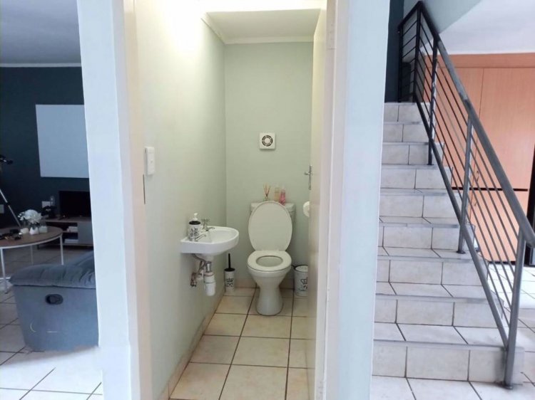 The ground floor boasts an open-plan kitchen and dining area, ideal for family living and entertaining. A guest toilet is also located downstairs for added convenience.