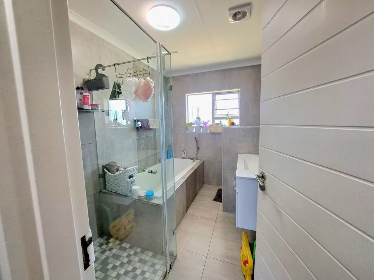 This home offers 3 spacious bedrooms, each fitted with built-in cupboards, ceiling fans, and large sunny windows that invite natural light throughout the day. The modern full bathroom is stylishly designed and includes a bath, shower, basin, and toilet.