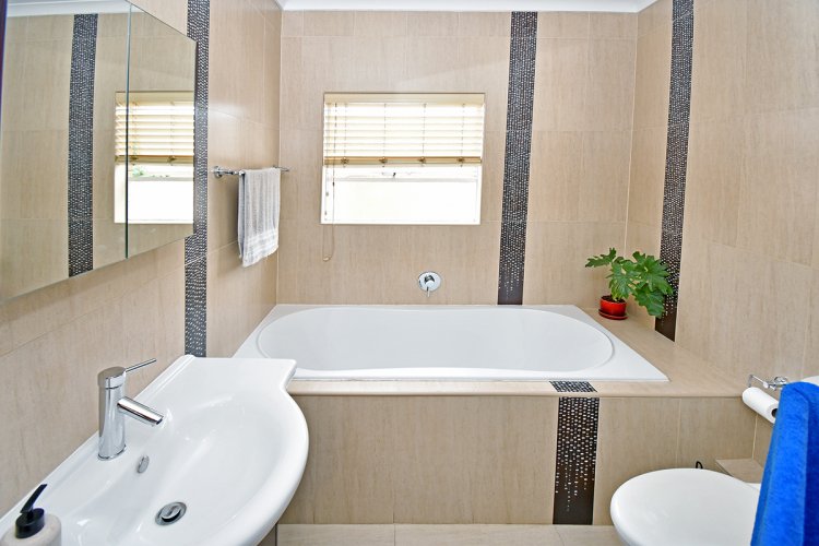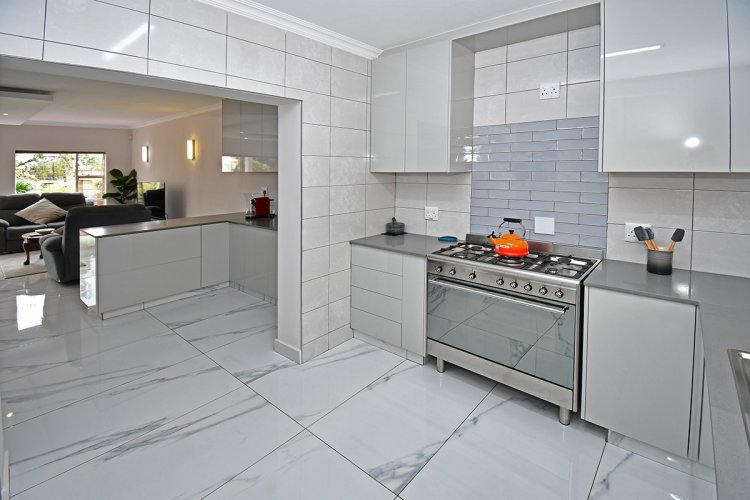 3 Bedrooms, 2 Bathrooms, Balcony. 1 Guest Toilet. Lounge, Kitchen, Dining room. Patio. Landscape Garden. 1 Garage. Double carport parking. Court yard. Entrance hall. Flooring- Porcelain tiles and laminate flooring.
