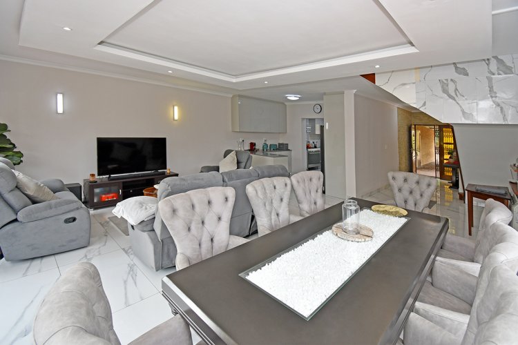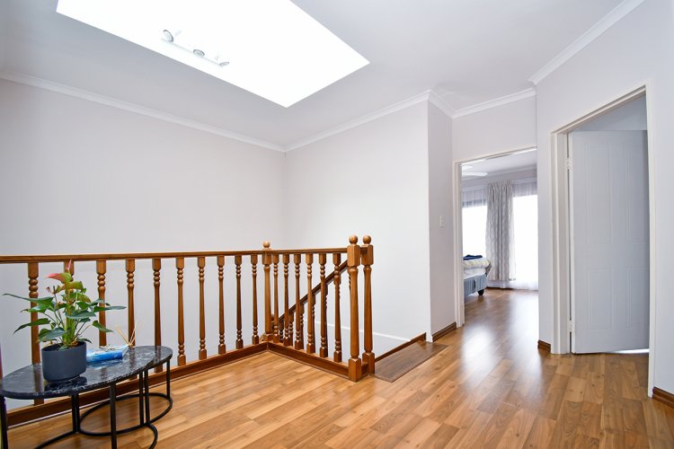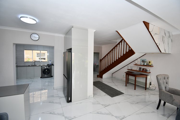 Upstairs, you'll find three spacious bedrooms and two bathrooms, one of which is a main en-suite, along with a balcony. The property includes one garage with a loft for extra storage and two carport parking spaces. There is also extra cupboard space on the landing near the bedrooms. Flooring throughout the home consists of porcelain tiles and laminate flooring. The complex offers a communal pool, braai area, and visitors' parking. Please note it is a Non Pet friendly complex. Call us to arrange a viewing, let's find you a dream home .