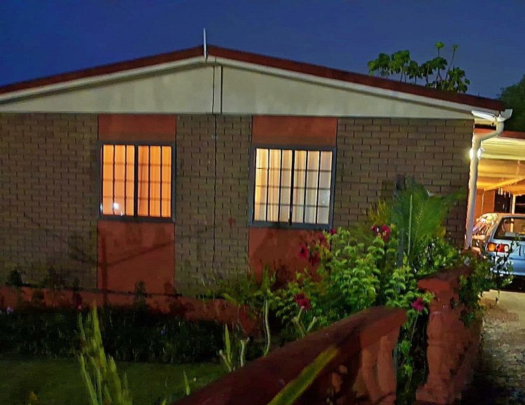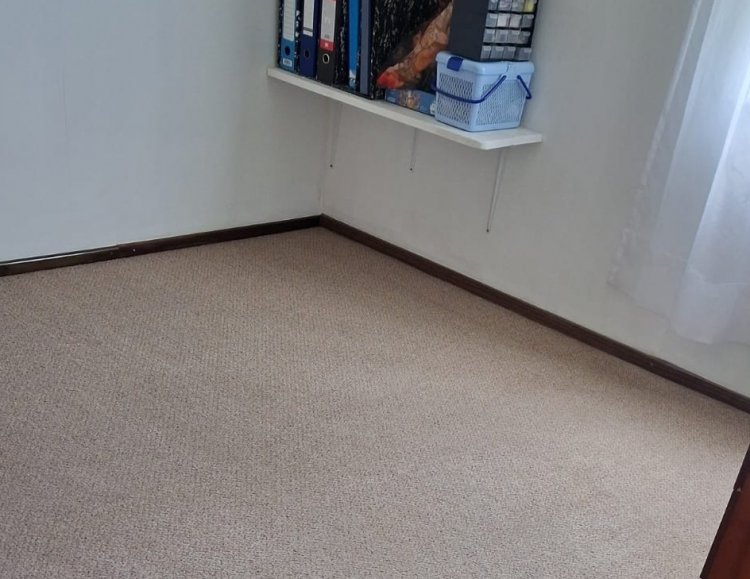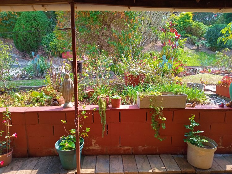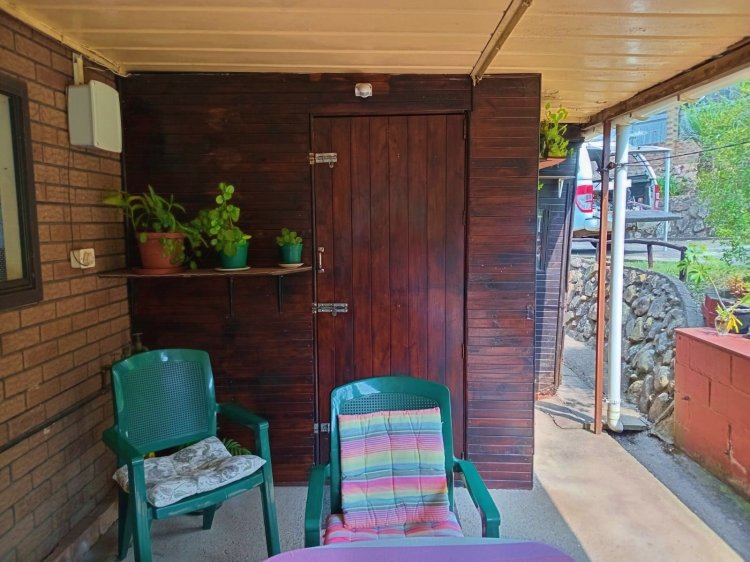 Three comfy bedrooms,(the main with a portable air-conditioner), are carpeted, have built in cupboards and ceiling fans. A guest loo, and a private bathroom with a shower, basin, toilet, have laminated flooring.