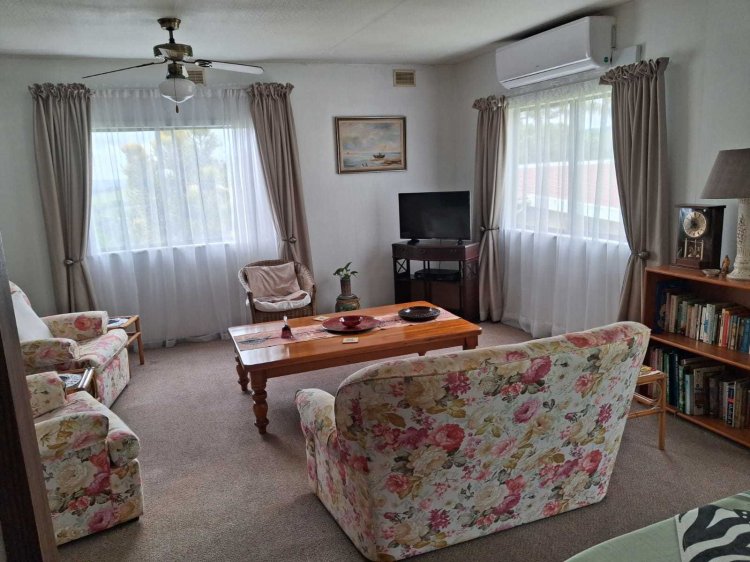 Enjoy a spacious open-plan kitchen plumbed for a dishwasher or washing machine. Relax in the cozy lounge, and dining area which have fitted carpets, two ceiling fans, and air-conditioning to beat the heat.
