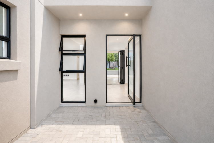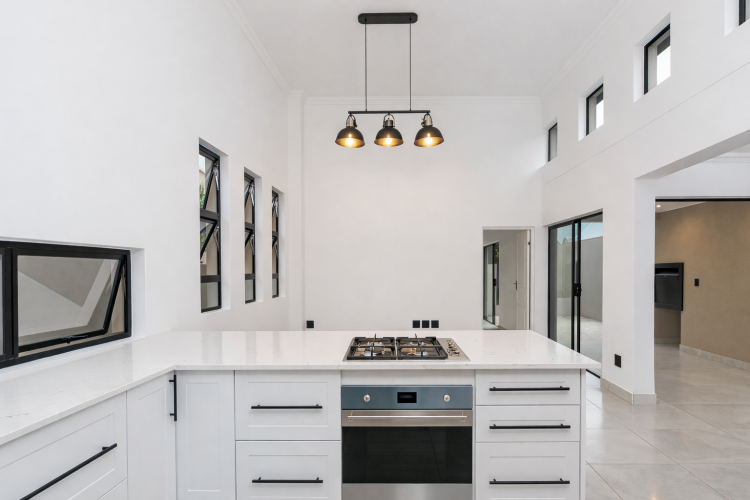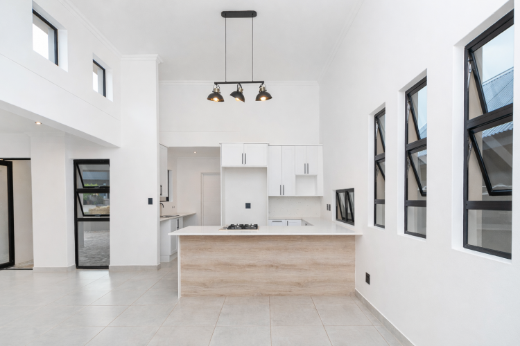 The interior offers a spacious open-plan design enhanced by exposed trusses that create a light-filled and airy atmosphere. The kitchen flows seamlessly into the dining and living areas, making everyday living and entertaining both easy and enjoyable. Finished with modern cabinetry, quality finishes and a separate scullery, the kitchen is as functional as it is stylish.