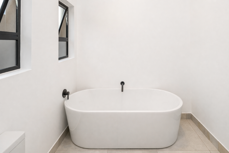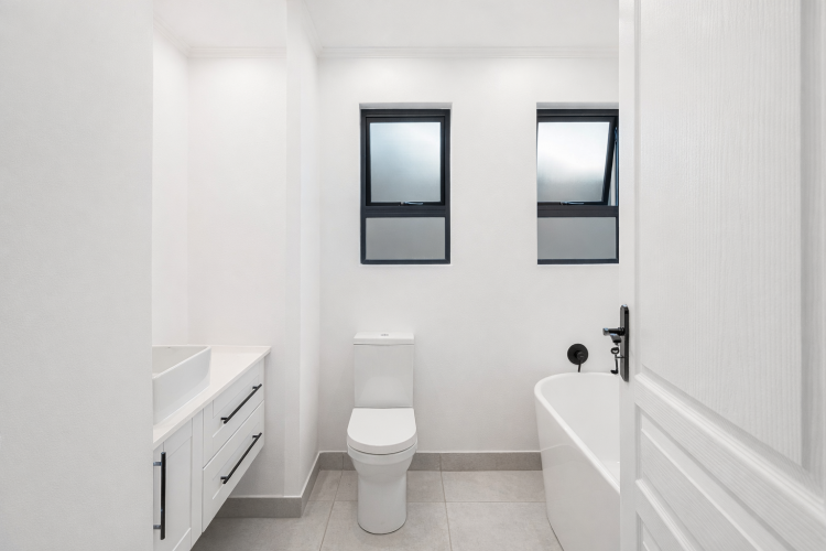 Accommodation consists of three well-proportioned bedrooms and two modern bathrooms finished in a timeless black-and-white palette. The main bedroom features an en-suite bathroom, providing a comfortable and private retreat.