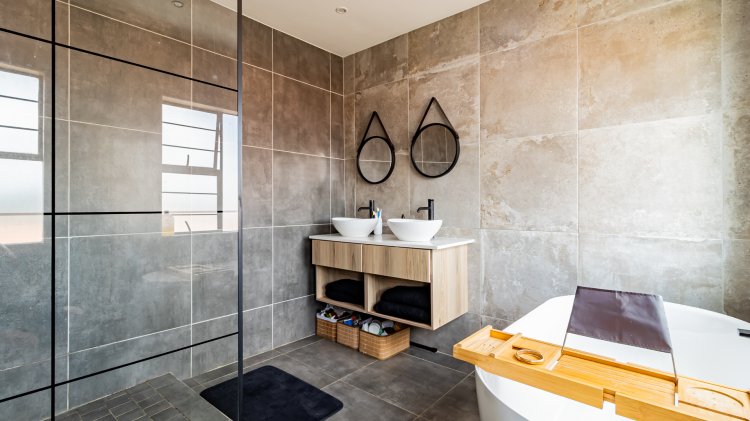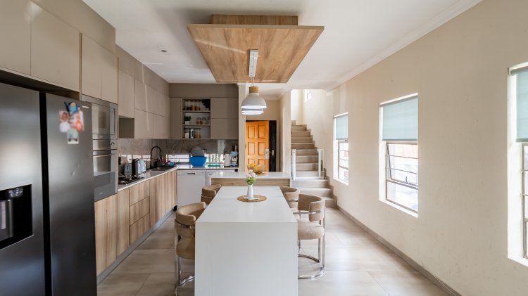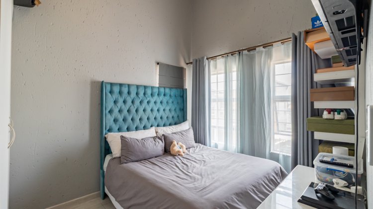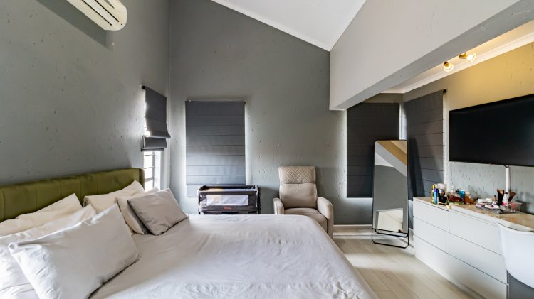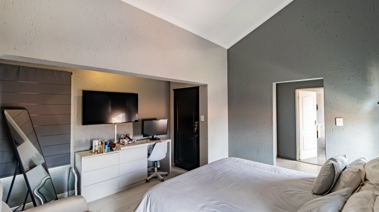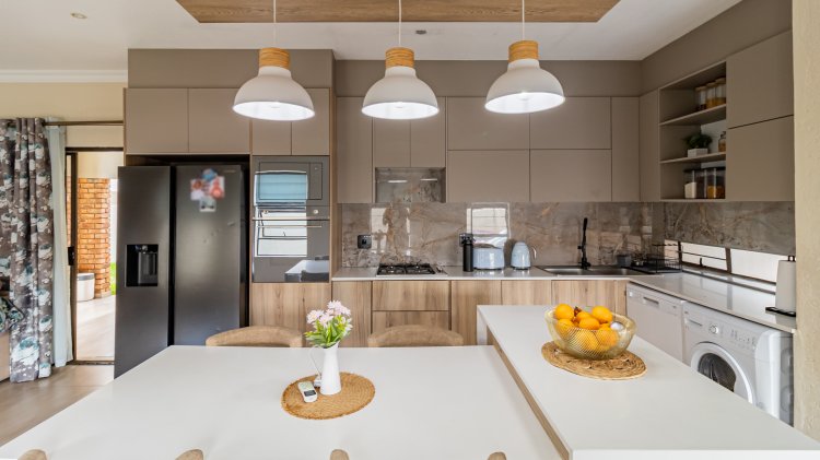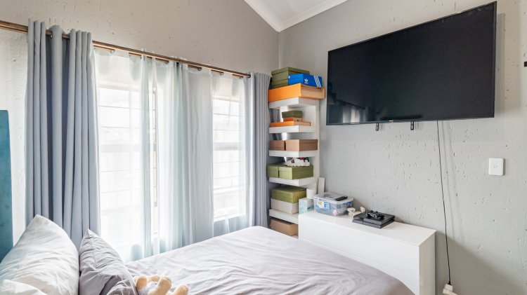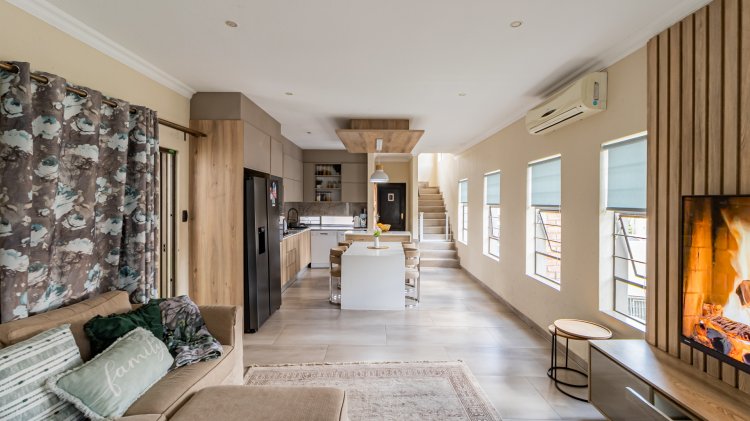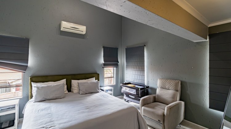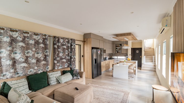 This beautifully designed free standing unit offers effortless contemporary living in a secure, access-controlled estate. Boasting three well-sized bedrooms with built-in cupboards, the home includes a main en-suite bedroom with air conditioning for year-round comfort. Two sleek, modern bathrooms are complemented by a convenient guest toilet downstairs, ideal for entertaining.