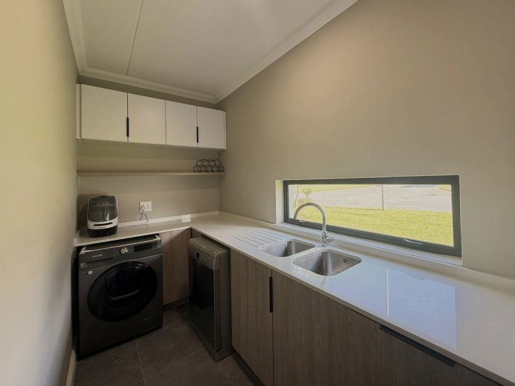 This modern family home is situated in the secure and sought-after Willowbrook Estate. Designed with an emphasis on natural light, the home features large windows and glass elements throughout, creating bright and airy living spaces.