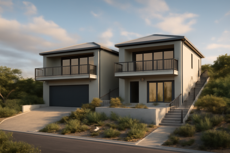Customisable project. Choose your own style finishing. Semi detached multiple dwelling. Secure Linkside location. Views, great address. Massive double Garage. Either two bedroom flat downstairs or one bedroom and double tandem garage or one massive 5 bedroom 4.5 bathroom home. Upstairs features 3 bedrooms each with en suite amenities and additional guest toilet. Custom kitchen/scullery layout. Large living area with North and Eastern facing views. Stoep with built in braai, wraparound balcony option. Large garden. No transfer duties. Purchase now and have your personal imprint on the property, have it finished to your own liking.
