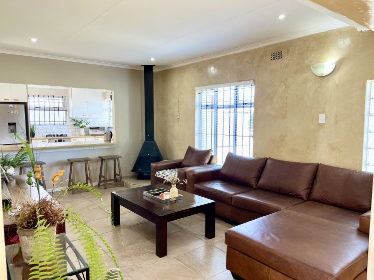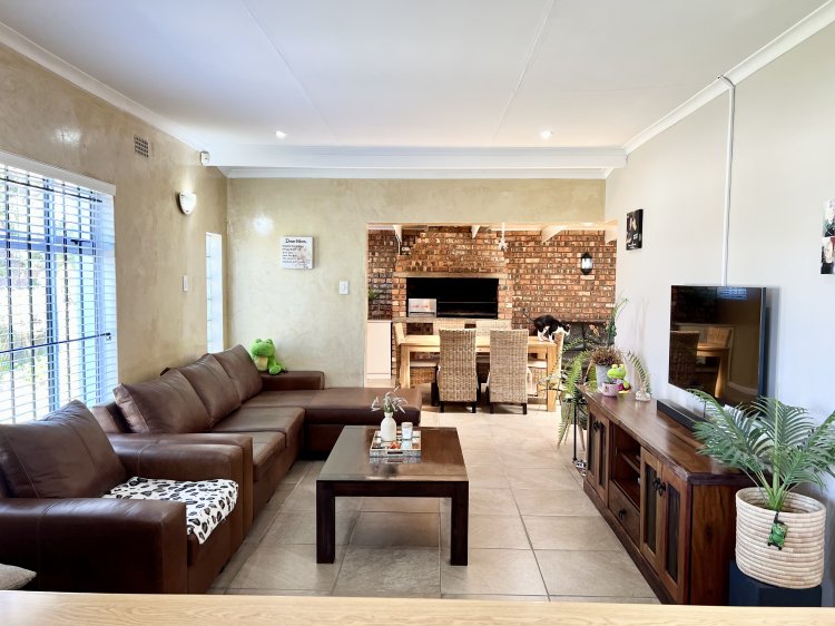This exceptional family home is move-in ready and includes 3 bedrooms, two of which have en-suite bathrooms, along with a separate study that can serve as a fourth bedroom. Enjoy the inviting open-plan living areas and a contemporary kitchen featuring a gas stove and electric oven. Additional highlights include an indoor braai, a cozy fireplace, laminated flooring in the bedrooms, and comprehensive DSTV connectivity.