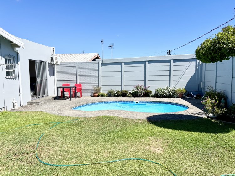 Step outside to your private outdoor oasis, complete with a solar-heated pool, beautifully paved surroundings, a well-maintained garden, and semi-automatic irrigation for easy upkeep. The home is designed for energy efficiency, equipped with a 5kW inverter and 7 solar panels, allowing you to power the pool pump using solar energy. The property has a borehole as well!