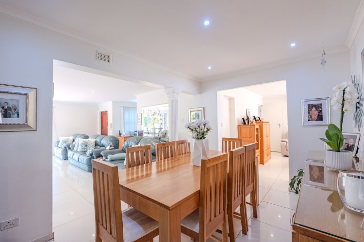 This delightful family residence offers the perfect blend of comfort and functionality, making it a great choice for the growing family. From the moment you step inside, you are welcomed into a spacious, light-filled lounge that provides the perfect setting for family gatherings or hosting guests. The lounge flows seamlessly into a well-appointed dining area, creating an open and inviting space that connects beautifully with the kitchen. This is fully fitted and designed with both style and practicality in mind. Featuring sleek granite countertops, ample cupboard space, and modern finishes, it provides everything needed for comfortable living. The dining area extends into a cozy TV lounge, offering a separate space for relaxation, or quiet evenings with loved ones. This area opens out onto a covered patio that overlooks the sparkling swimming pool, making it an entertainer’s dream. Whether hosting summer braais, poolside parties, or simply enjoying quality time outdoors, this space encourages a relaxed lifestyle. The ground floor is home to three generously sized bedrooms, each designed for comfort and convenience. Two of these bedrooms are en suite, providing privacy while the third bathroom serves the remaining room. Upstairs, the master suite is a true sanctuary. Offering peace and privacy, it boasts ample space and features a charming Juliette balcony, the perfect spot for enjoying your morning coffee while overlooking the serene surroundings.