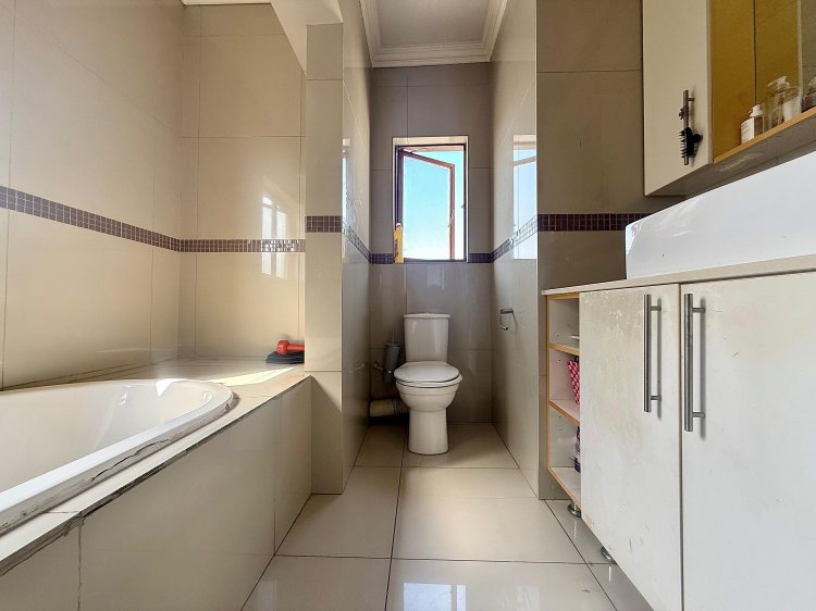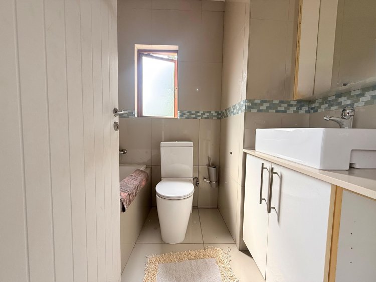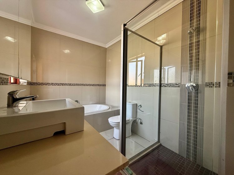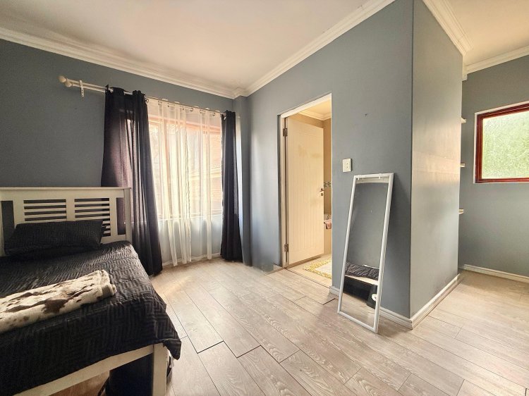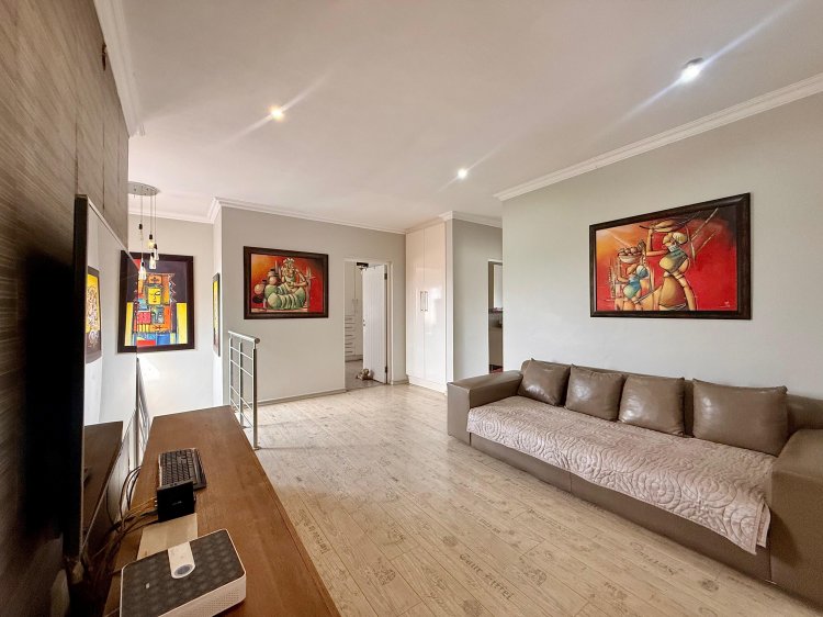 Upstairs, a spacious pyjama lounge provides an ideal family retreat. The luxurious main suite features a full en-suite bathroom and ample cupboard space, complemented by two additional bedrooms, each with private en-suite bathrooms. A fourth bedroom offers flexibility as a guest room, home office, or nursery.