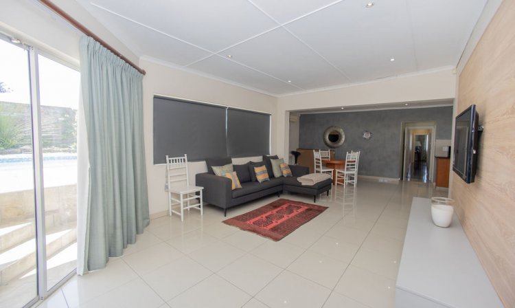 Ideal for entertaining, the spacious entertainment area is fitted with a gas braai and air conditioning. This area leads seamlessly to a fully equipped flatlet with it's own entrance - featuring a kitchen with a stove, oven, extractor fan and laundry plumbing,along with a lounge,study area and an air-conditioned bedroom with ensuite bathroom.