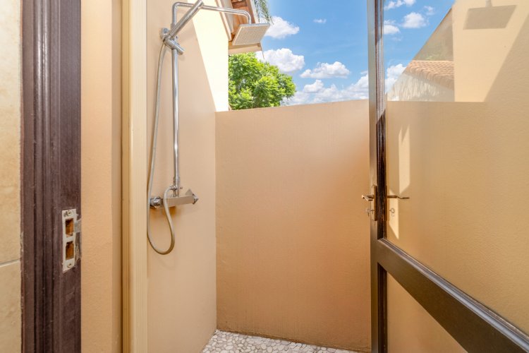 Upstairs, the main suite feels like a retreat carved out of calm. A full en suite bathroom, built-in cupboards, and a private balcony create a sanctuary, while the outdoor shower adds a touch of indulgence, turning routine into ritual. Three additional bedrooms, each thoughtfully designed, share a family bathroom with both bath and shower, ensuring comfort for every member of the household. At the same time, the fourth bedroom waits to transform into a home office or study — adaptable to the rhythm of your life.