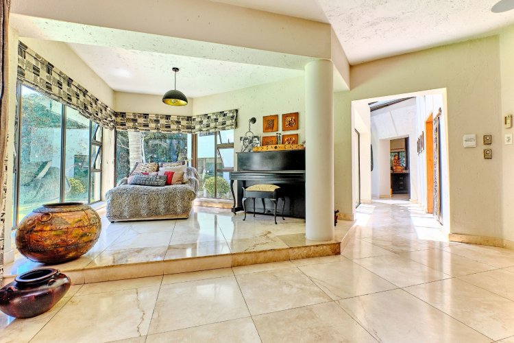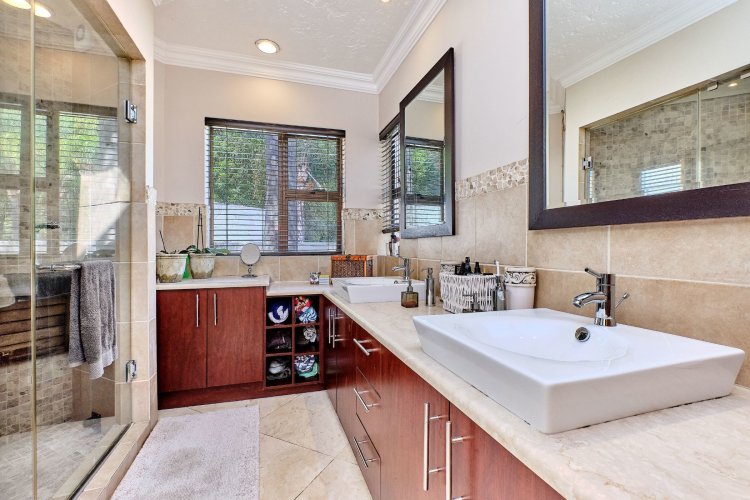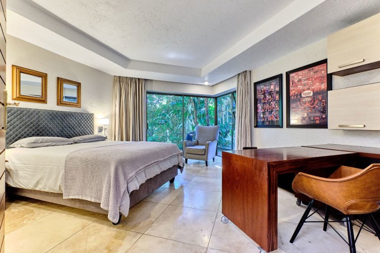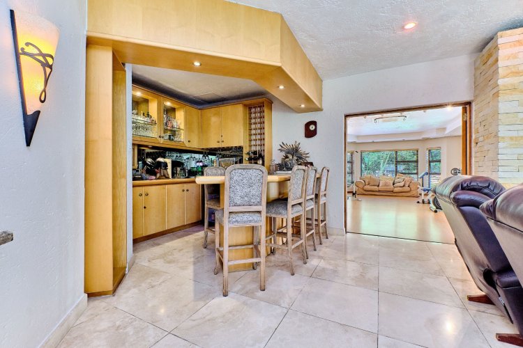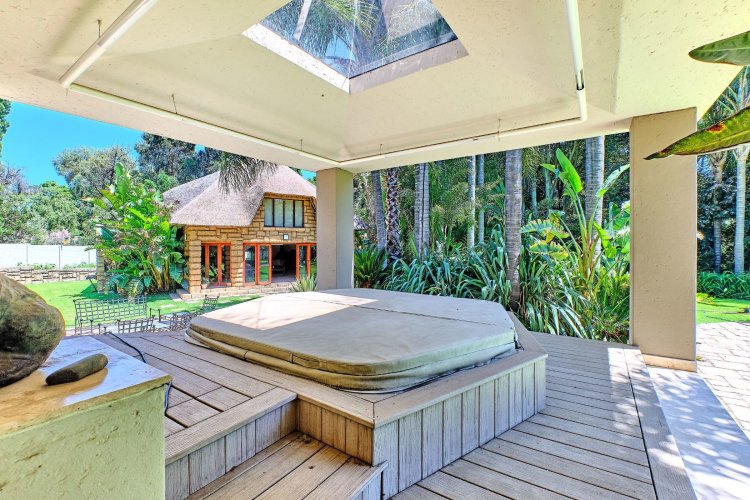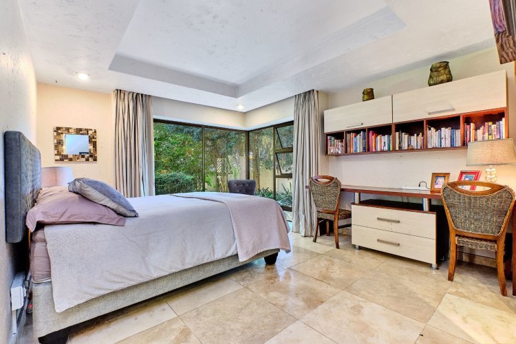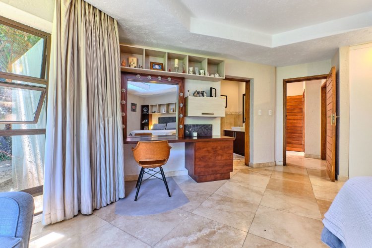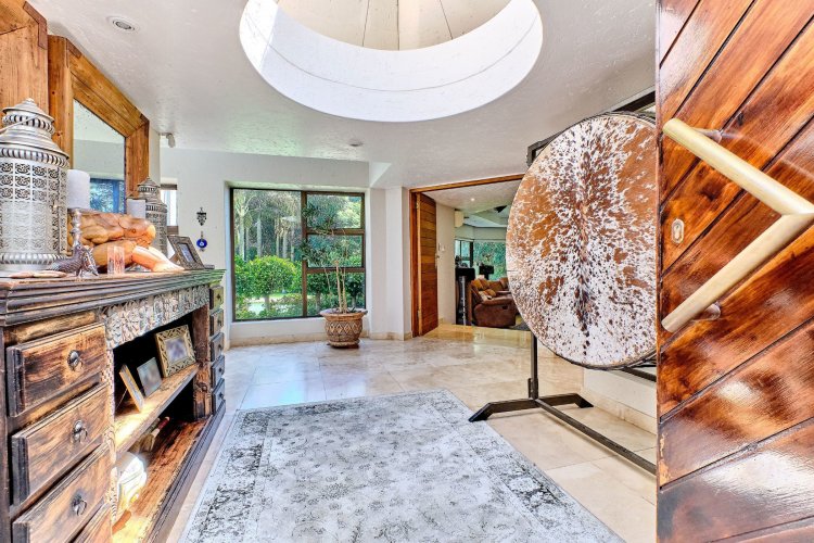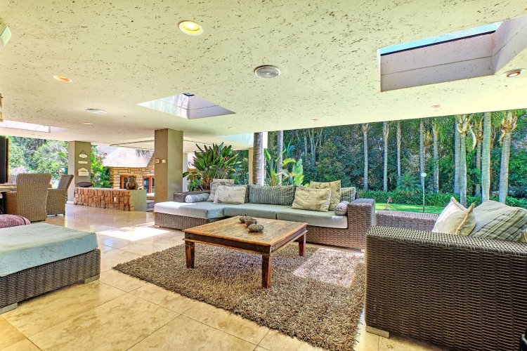This exquisite residence in Bryanston East offers the ultimate in luxury and tranquillity, set within a secure boomed and gated enclave. Designed with a resort-like ambiance, the home features expansive open-plan living spaces, enhanced by glass passageways and atriums that connect seamlessly to a manicured, low-maintenance landscaped garden framed by mature trees, including stately palms. The main house spans approximately 1,000m² under roof and comprises: 1. 4 en-suite bedrooms , each with garden access, plus a study and TV/media room – all finished with elegant travertine tiles. 2. A luxurious main suite with walk-in dressing room and a private patio overlooking the serene garden. 3. A fully fitted granite kitchen with breakfast bar, gas hob, electric oven, and adjoining scullery/laundry. 4. Ducted air-conditioning and expansive skylights that bathe the interiors in natural light. 5. A mirrored gym with twin showers , ideal for at-home workouts. 6. An impressive covered patio (±80sqm) leading to the swimming pool and rim-flow undercover Jacuzzi. Additional features include: 1. A renovated guardhouse converted into a luxury home office with en-suite shower. 2. A self-contained domestic flatlet. 3. A second garden dwelling , ideal as offices or an entertainer's haven, complete with lounge, games room, cigar lounge, cocktail area, kitchen, bathroom, bedroom, and wine cellar. Energy & Water Systems – Fully Off-Grid 1. Solar System: 1. Grid-tied with battery + inverter backup (50–80kWh/day). 2. 3-Phase Deye 12kW inverter. 3. 3 x 5kW Volta Stage 1 batteries (expandable to 30kW). 4. 30 x 600W PV panels (18kW real-time generation). 5. Seasonal solar generation averages available on request. 2. Water System: 1. 100% off-grid borehole supply (switchable to municipal if required). 2. 10,000L water tank with variable pressure pump. 3. Supplies both dwellings and irrigation. 4. Full filtration system including UV, softener, pH balancer, and pipe protection. 3. Geysers: 1. 4 geysers in total, all fitted with Geyserwise controllers. 2. Bedroom geysers: Gas (2 x 48L) and/or solar/photovoltaic/grid-tied. 3. Kitchen geyser: Solar and/or photovoltaic/grid-tied. 4. Cottage geyser: Solar and/or photovoltaic/grid-tied. Additional Highlights • Bosch 90cm glass-top gas stove/hob. • Three garages plus three covered parking bays, set at the end of a sweeping driveway. • Drop-off zone at entrance, ideal for guests in inclement weather. • Automated irrigation with dual zones. • State-of-the-art security with smart-controlled access, alarm, and floodlit garden. • Re-waterproofing of all flat roof areas. 1. New concrete screed to driveway entrance gate. 2. Full exterior repainting. 3. Refurbishment of all woodwork (windows, cottage doors, garage doors). 4. Upgraded lighting to garden and selected interiors.
