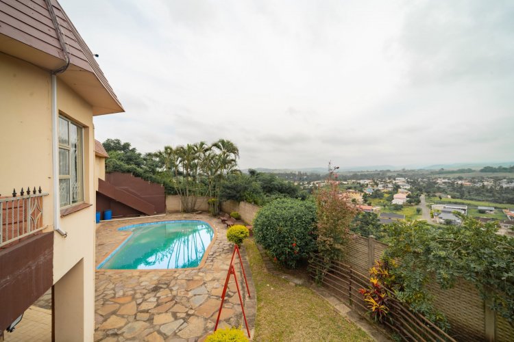 Exclusive Mandate! Just 7 minutes from Ballito on the R102, this charming family home sits on approximately 1349m² of land. It boasts a spacious layout over 2 levels, with a swimming pool and is above road level offering lovely views of the surrounding suburbs. The main house has 3 bedrooms, including a stunning master bedroom with an ensuite featuring a Jacuzzi bath and dressing room, an expansive kitchen and scullery leading out to a large back yard. The 4th bedroom with en-suite can be converted to a flatlet or used for extended family. All rooms are air-conditioned. Staff accommodation. 2 x Jo Jo tanks.
