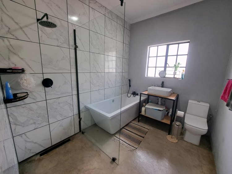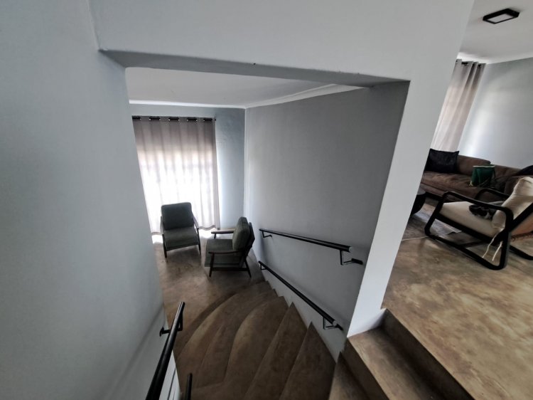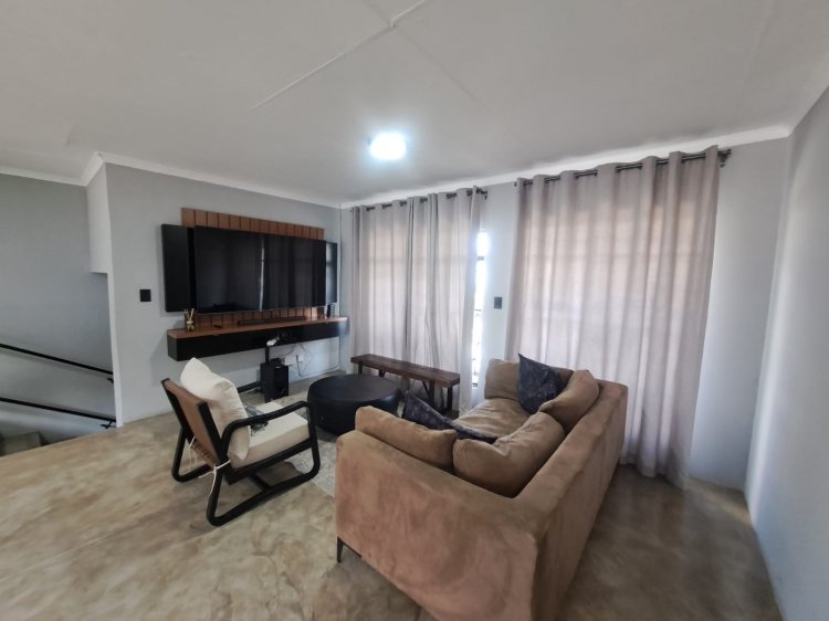 Perfect for entertaining, the outdoor space features a built-in braai, a cozy boma, and a sparkling swimming pool. Parking is abundant with 2 double garages plus covered parking for 2 additional cars. For added peace of mind, the property also includes a full alarm system.