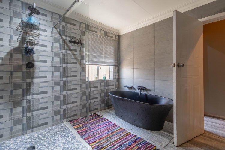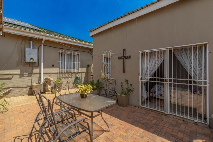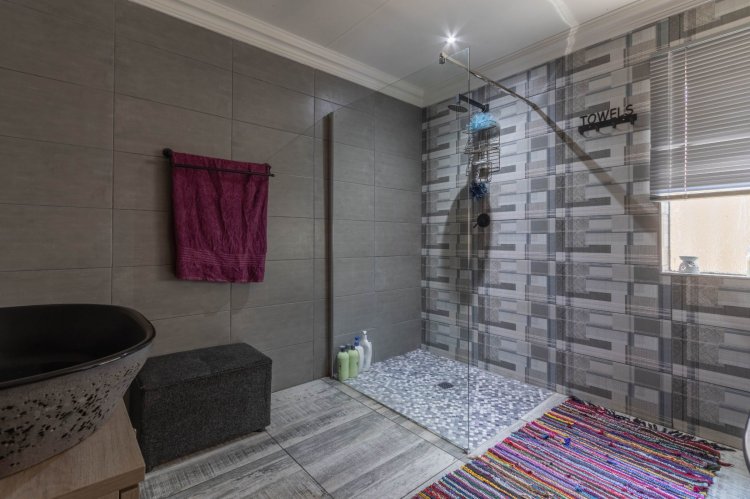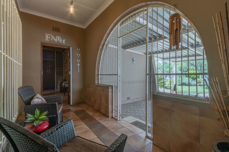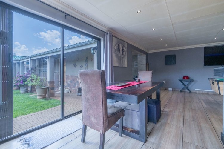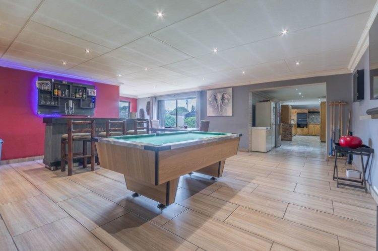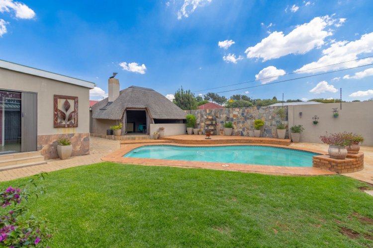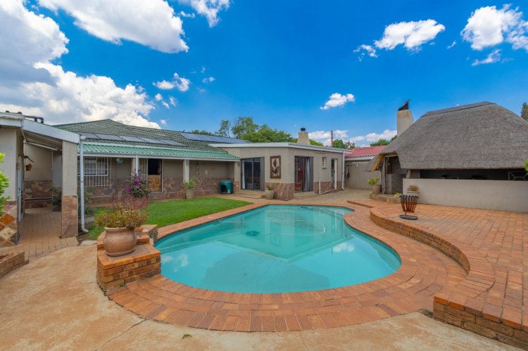 Office with a sliding door, outside laundry, thatch entertainment area with built in braai and canvas to close up if the weather is bad, overlooking a sparkling solar heated swimming pool and gorgeous garden. Wendy house for storage, double extra length garages, double carport, two automated entrances, ample paved parking, great security, electric fencing, fiber, prepaid electricity, gas geysers and a full solar system. This property will steal your heart!