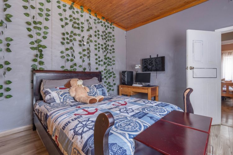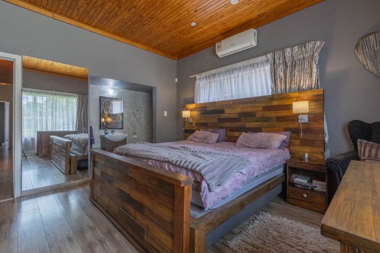 Set in a gorgeous garden the main home offers an enclosed patio, grand entrance hall, big open plan lounge and dining room, four bedrooms all with built in cupboards, two and a half bathrooms, Cooks kitchen with lot of cupboards, gas stove, electric stove and double eye level oven leading to a large entertainment room with built in braai and bar, guest bathroom and sliding doors to the pool.