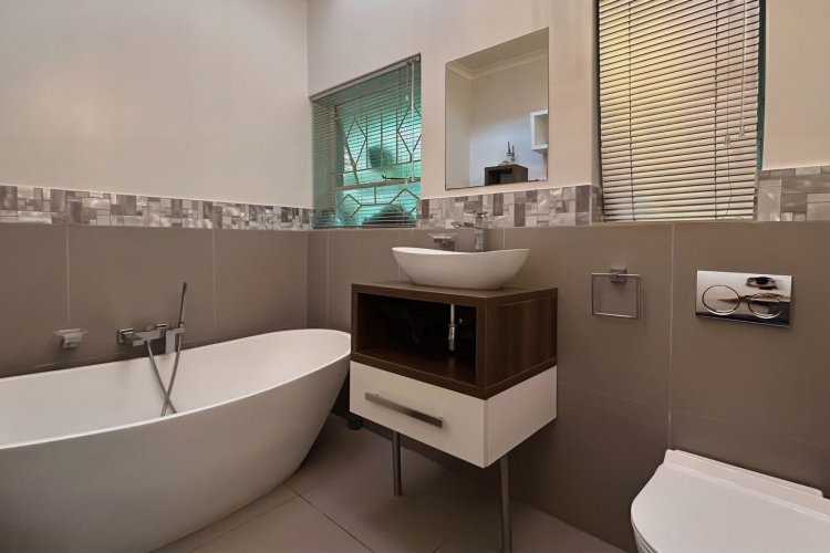 The downstairs area features three well-sized bedrooms along with a welcoming lounge, dining room, and a kitchen that flows effortlessly throughout the space. The spacious kitchen includes a stunning gas stove, ideal for the discerning chef who loves to cook and entertain.