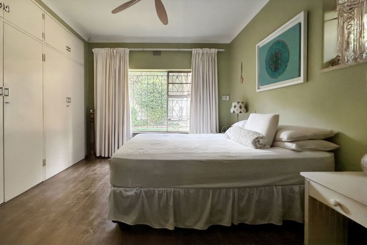 Step outside to a sparkling pool surrounded by a well-maintained, established garden, offering a serene setting for relaxation and gatherings.