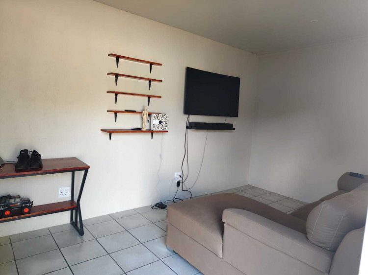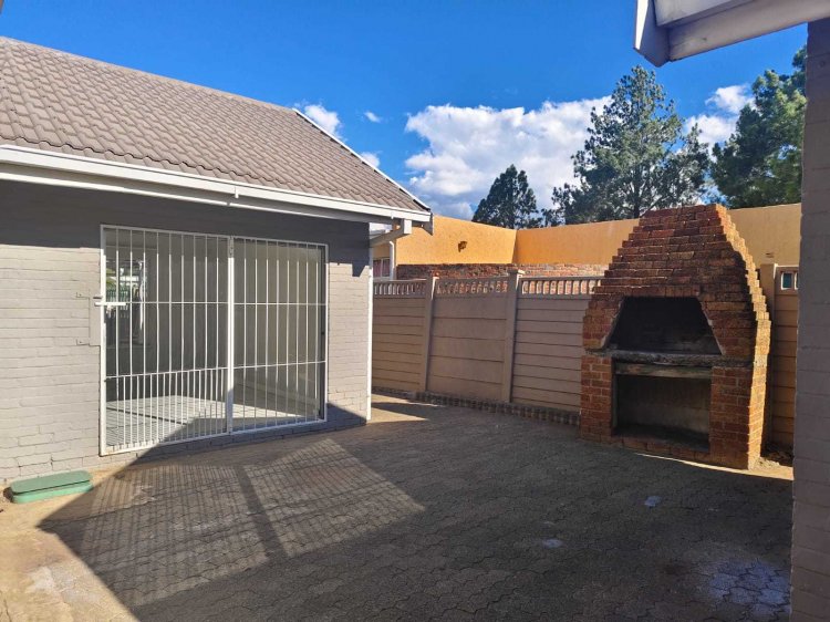 Outside you find found a built-in braai and store room and Jo-Jo tank. There's also a Wendy house and bird cage. Double carport for 2 vehicles.