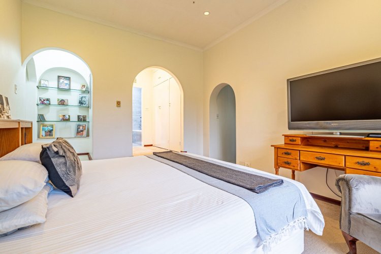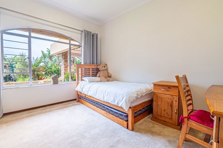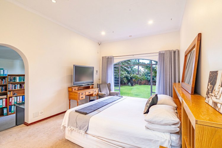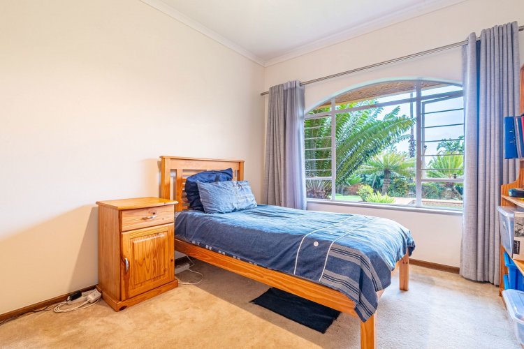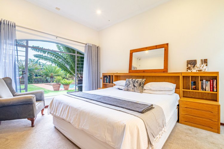 The home's living spaces are designed for easy flow and family living — offering a welcoming guest lounge, a formal dining room that accommodates an eight-seater table, and a spacious, well-appointed kitchen with a separate scullery and room for up to four appliances.