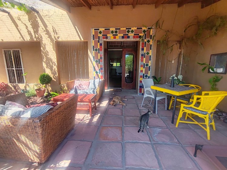 Borehole with pure water connected to a full irrigation system, supporting the well-maintained vineyards, chilli field, and 25 varieties of fruit trees.