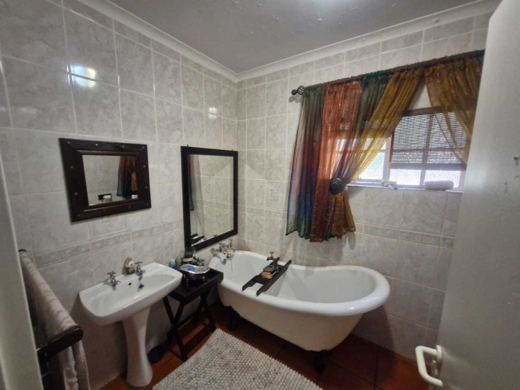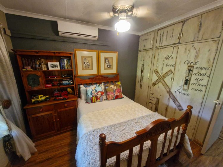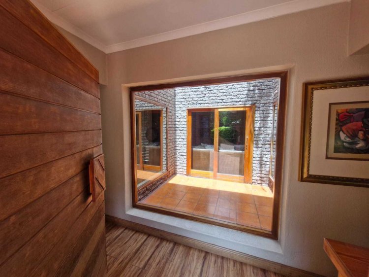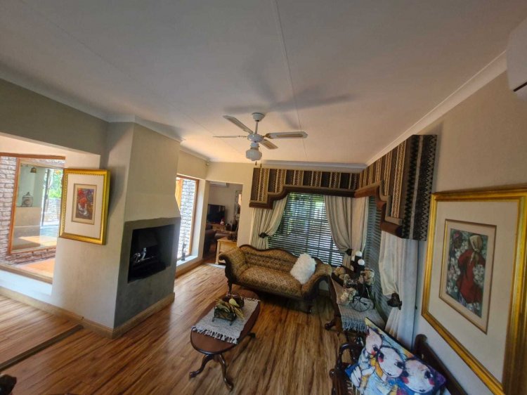 Key Features: Spacious entrance with a welcoming atmosphere 4 bedrooms with built-in wardrobes and air-conditioning units Main bedroom with En-suite bathroom and a separate dressing room Office/office space area for work-from-home convenience Living room with air-conditioning, ceiling fan, and sliding doors Dining area Laminate floors throughout for easy maintenance Double garage plus undercover parking for 2 additional vehicles Flat included, ideal for guests or rental income Large patio and dedicated braai area with swimming pool for entertaining Huge garden Window blinds and ceiling fans